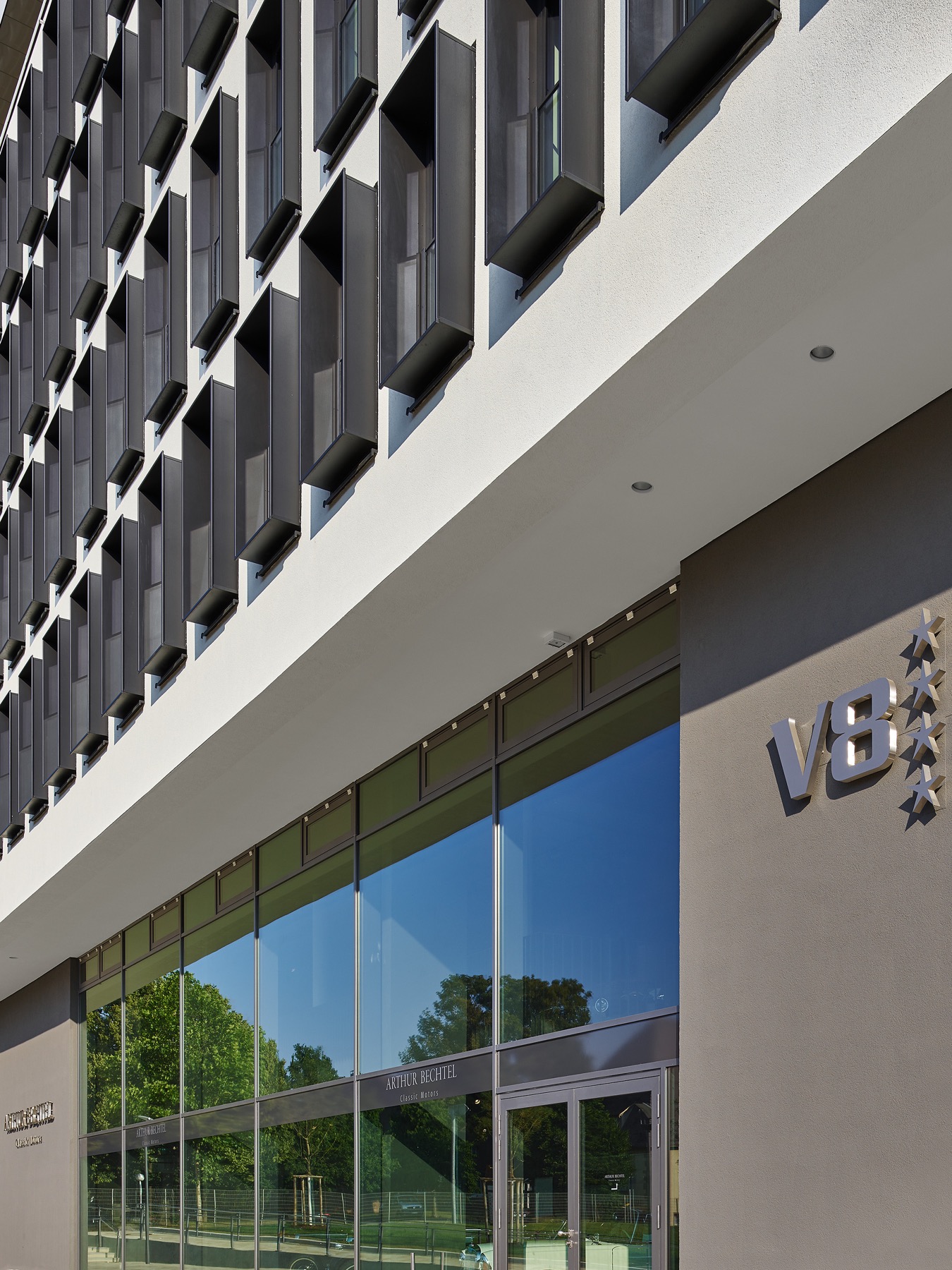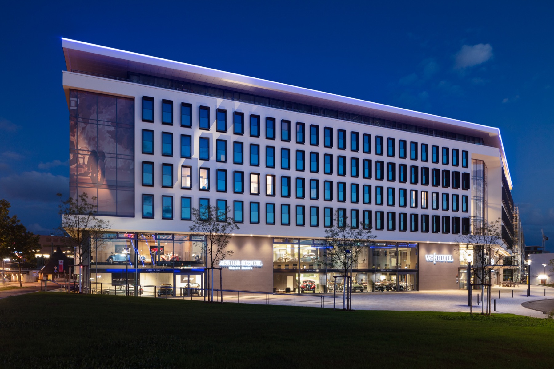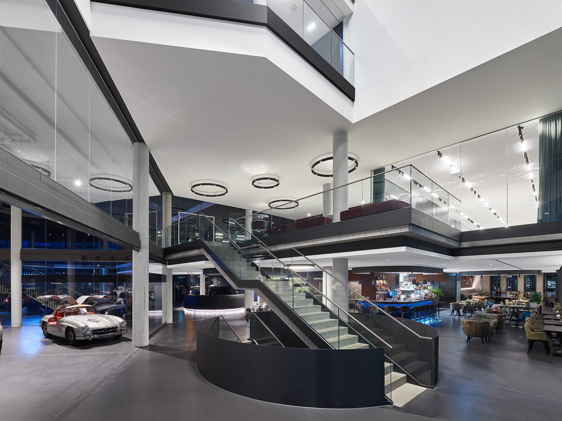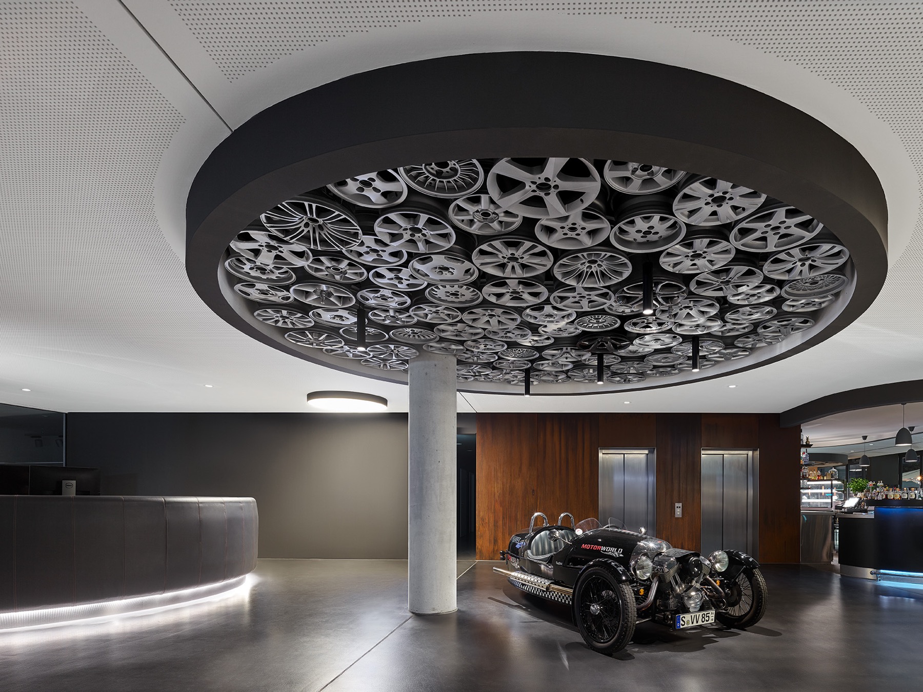 Entwurf und Planung eines 4 Sterne Superior Hotels mit Businesszimmern und Themenzimmern zum Thema Automobil. Im Erdgeschoss integriert ist ein Oldtimer Showroom sowie Verkaufs- und Werkstatträume des Automobilherstellers Mc Laren.