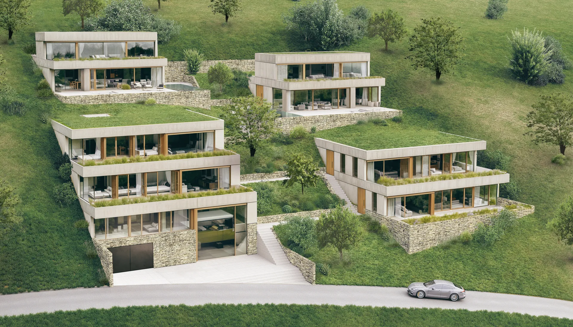 Wettbewerbsbeitrag für eine Wohnanlage in Mauren an einem ehemaligen Weinberg.