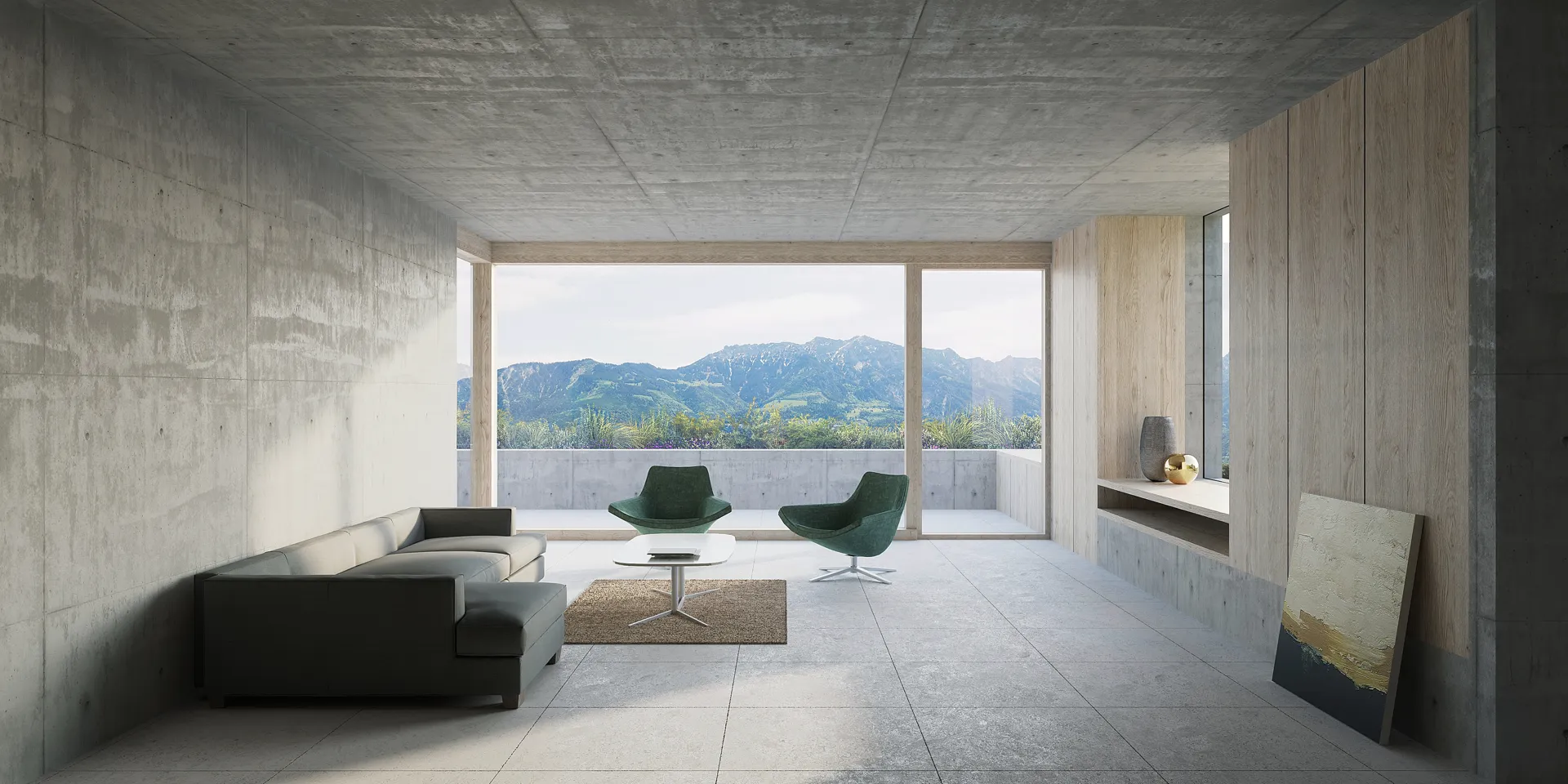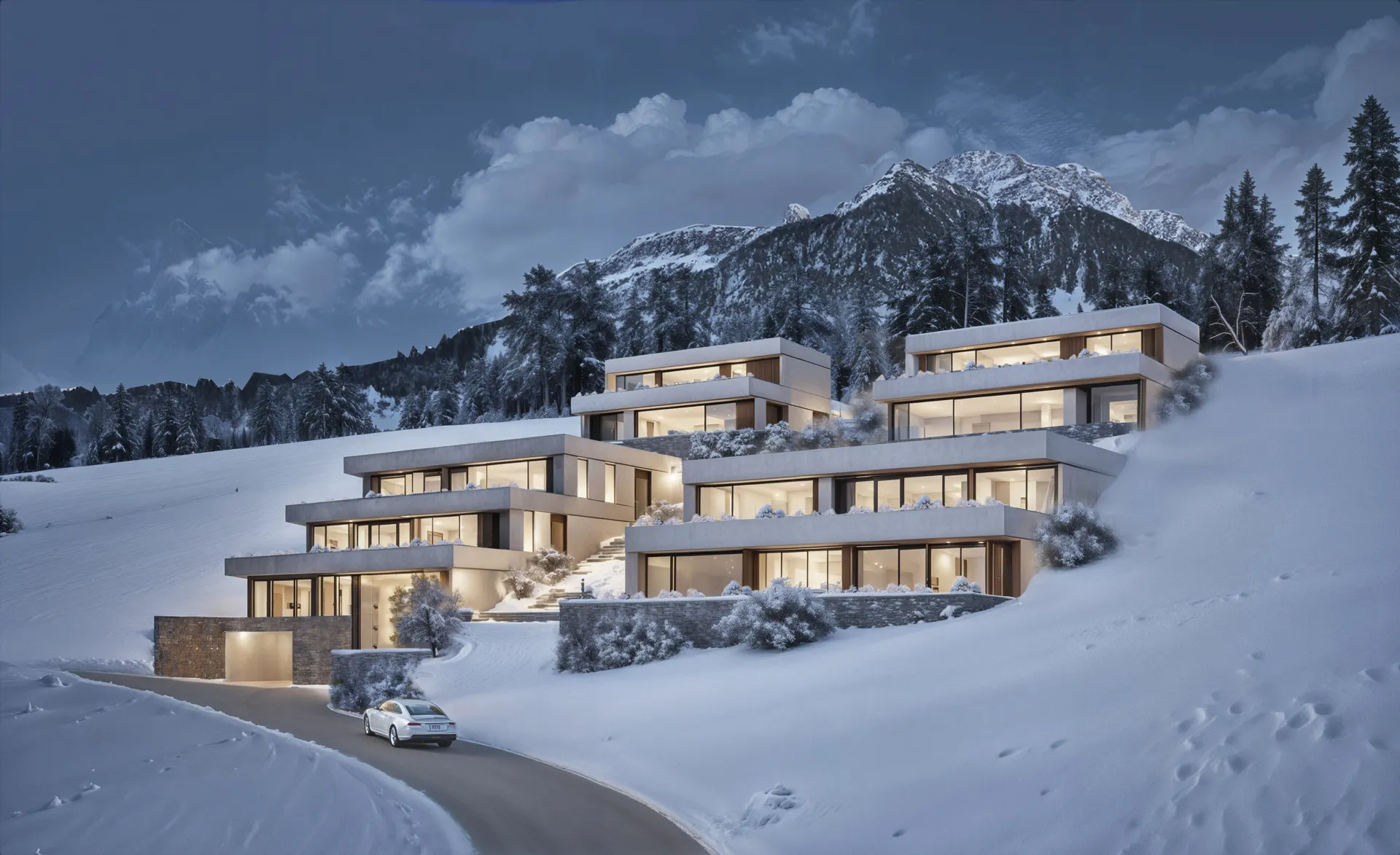 Auf der Suche nach einem minimalen volumetrischen Erscheinungsbild, kombiniert mit der maximalen Wohnfläche, entsteht eine auffällige und hocheffiziente Lösung für die Hänge Liechtensteins.